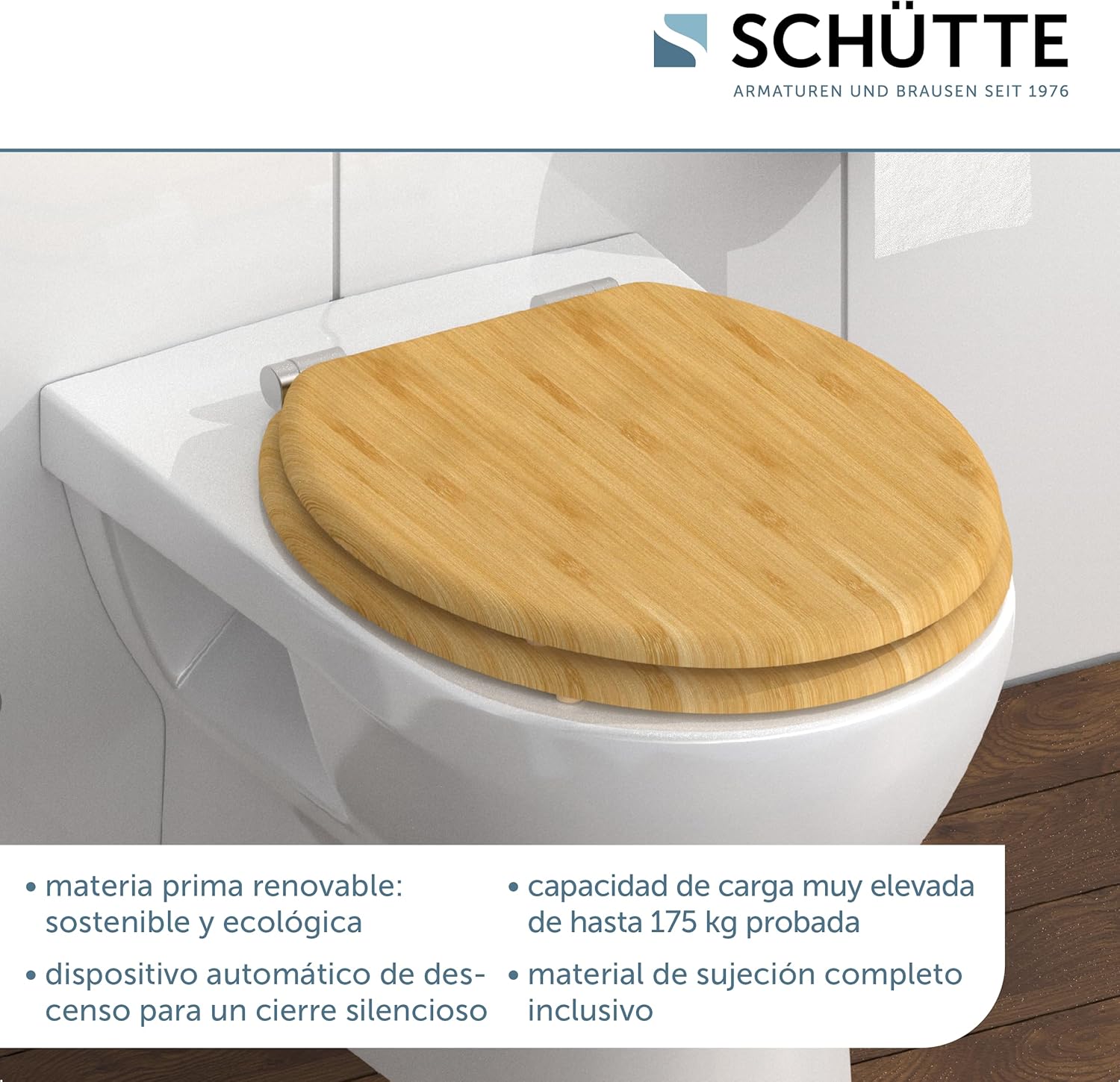 Esta tapa de inodoro con asiento está fabricada en madera de bambú. Este material es muy resistente y robusto y tiene una gran resistencia a la humedad por lo que es perfecta para el ambiente de una habitación como es el cuarto de baño. Esta tapa de WC dispone de un doble mecanismo que hace que su cierre sea lento y silencioso lo que contribuye a proteger el asiento de golpes.